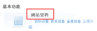 2、进入管理主页后,在基本功能那里点击“网站资料