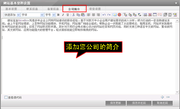 6、上传完备案文件点击“公司简介